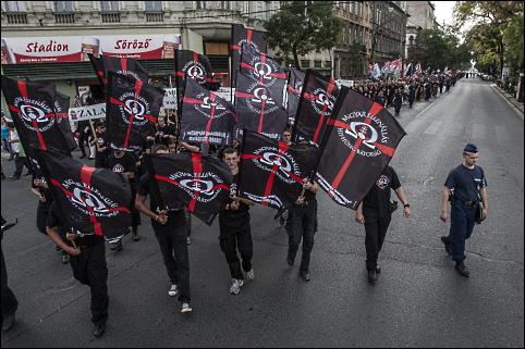 A rendőri sorfal között a szélsőséges nézeteket valló Betyársereg és a Pax Hungarica Mozgalom, valamint a különféle gárdista szervezetek és hungarista csoportosulások egyenruhás és egyforma pólót viselő tagjai, szimpatizánsai vonultak.