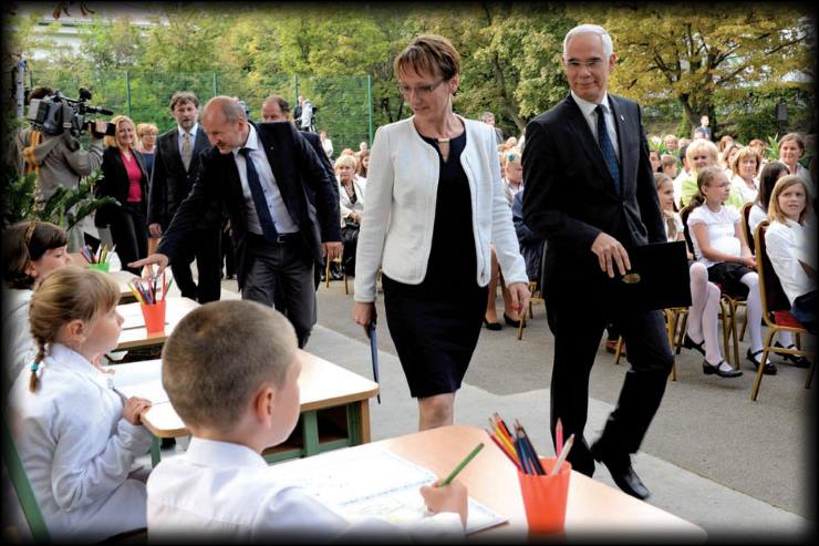 Köznevelők – Balog Zoltán miniszter, Czunyiné Bertalan Judit államtitkár – és közneveltek (MTI)